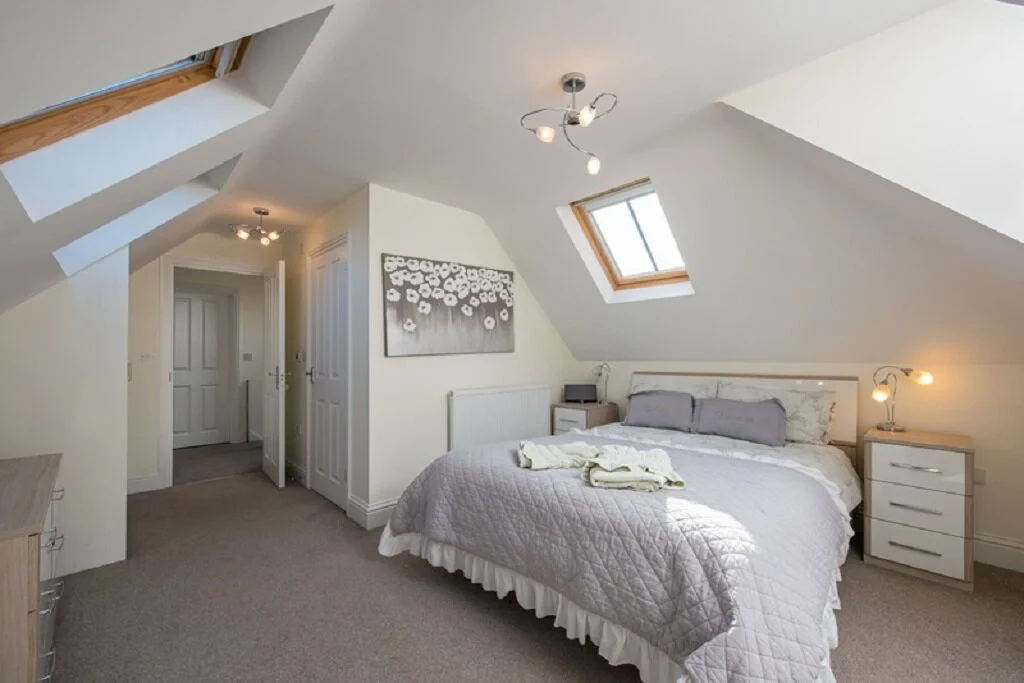 The Main Bedroom also has its own ensuite, with a digital controlled shower unit, large basin, toilet and beautiful white tiling and underfloor heating.